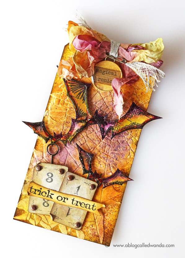 Wanda, this is truly a Fabulous Masterpiece! The colors, the texture, the BATS!! Those bats have such dimension and creepiness. I love it all. Yes, you have outdone yourself. So unexpected of you and right on point. Thank you for the great photo tutorial. 👍