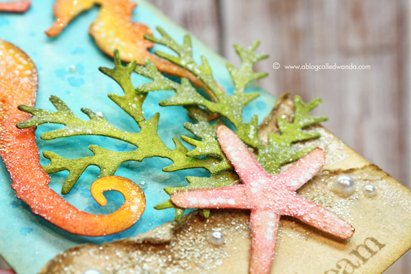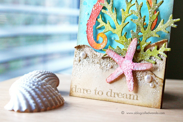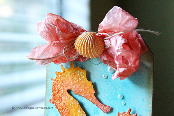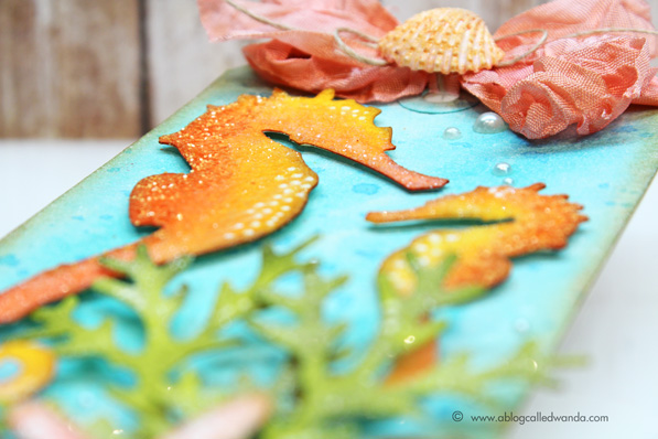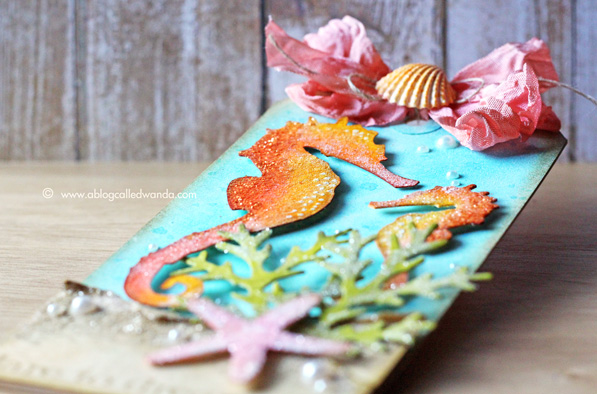 Hello and Happy Saturday my crafty friends! YAY! It's the weekend and I'm stamping! What's better than that? Nothing! Okay, maybe if someone brought me a pitcher of margaritas – that would be better! LOL. It's been a creative day here in my crafty bee hive and I'm excited to show you my card for today! But first, can I share some super cool and fantabulous news? My seahorse tag was picked as a winner by Tim Holtz for July's 12 tags of 2014!! No, I'm totally NOT kidding! My heart skipped a beat yesterday when I went on Tim's blog to see the new tag for August…and I scrolled down…and there was my name! You know, that is one of my favorite projects I think I've ever made so it was extra nice to be recognized for this one. I get a prize (I have no idea what!!!) and a new blog badge (love)…. Thanks for letting me blabber on about it.