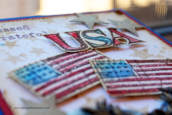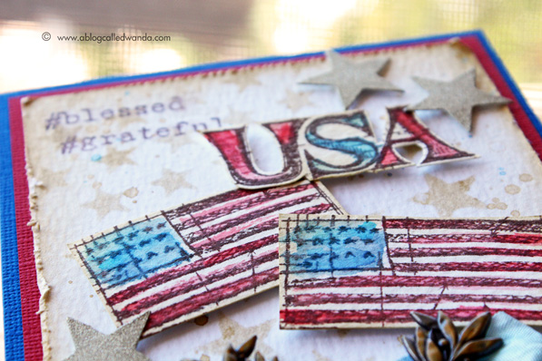 For an added bit of grunge, I did some speckles of brown onto the honeycomb die cuts using the Spritzer Tool and my Gathered Twig marker.