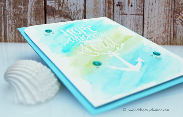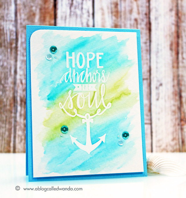 The anchor die is from Memory Box, and the beautiful stamp is from Waltzingmouse Stamps. Love the font combination. And, you can't go wrong with crisp white embossing…