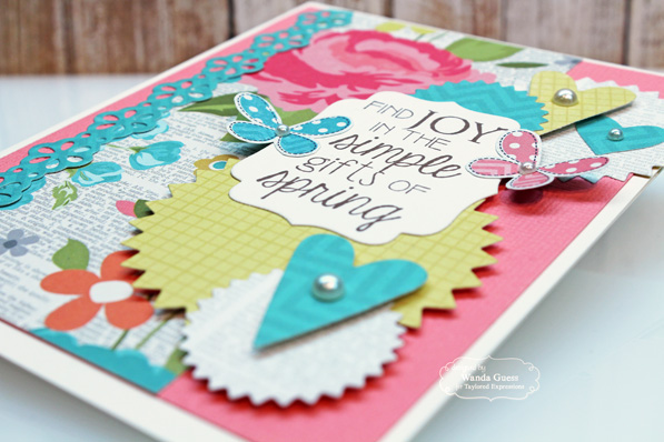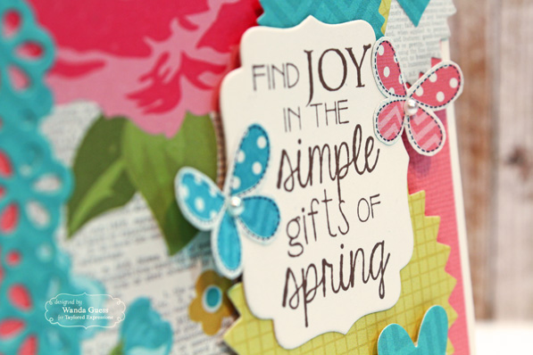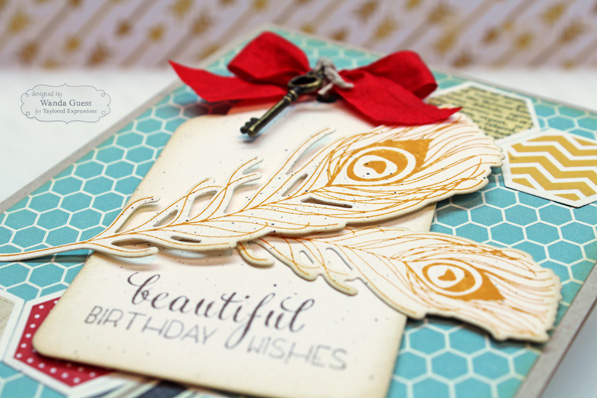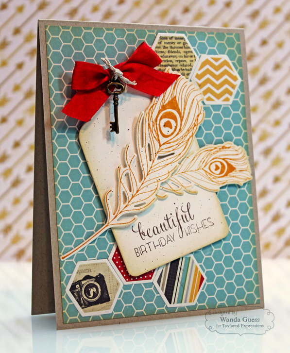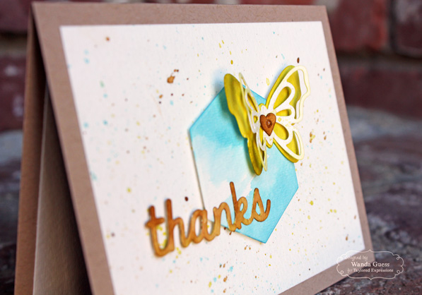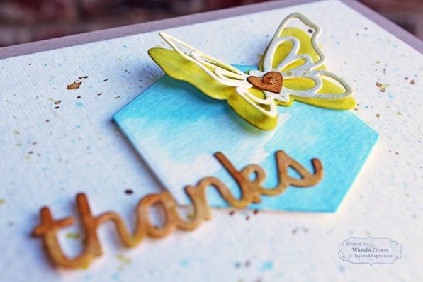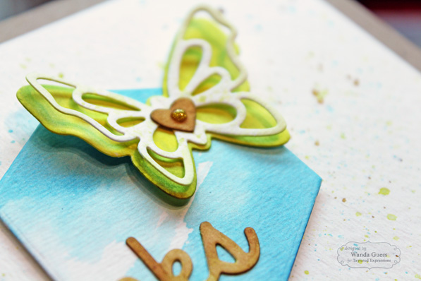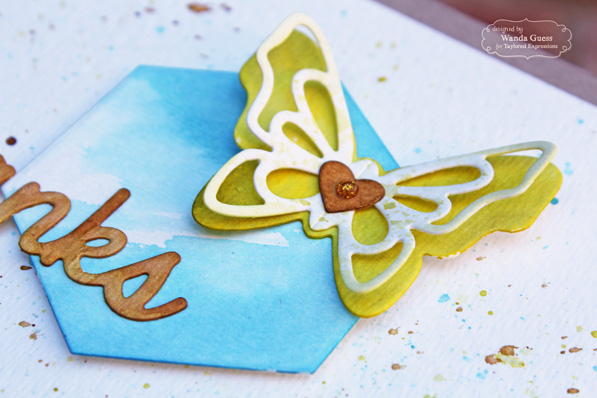 I used some of my most favorite dies from Taylored Expressions and some soft watercolor techniques. (Watercolor is back, my friends!) All my supplies are from Taylored Expressions, and a fulls supply list is at the bottom of my post. I used the Hexagon die as my focal color point and the off-set a pretty butterfly…
