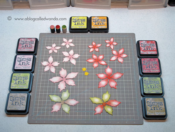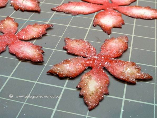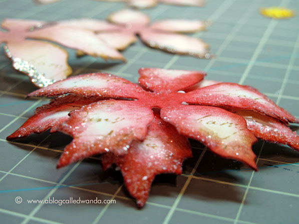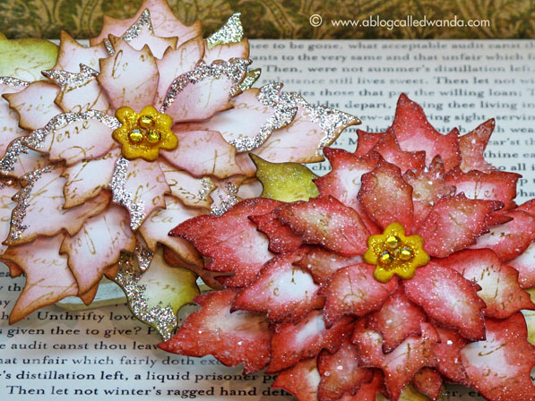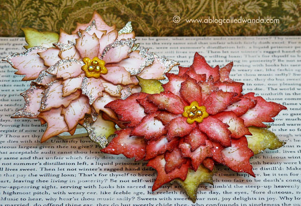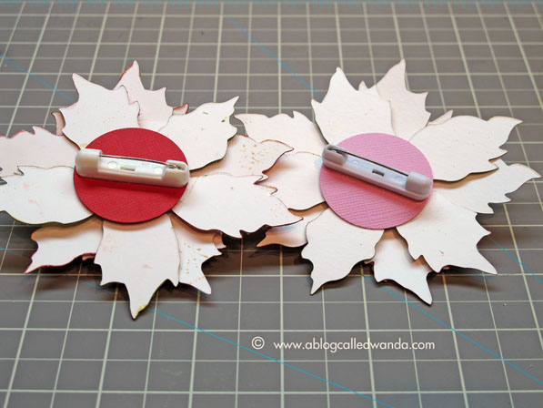 December had me feeling inky and glittery all over when I made these poinsettia pins from the tattered poinsettia die from Tim Holtz! I made a pink one too. Totally fun project!
