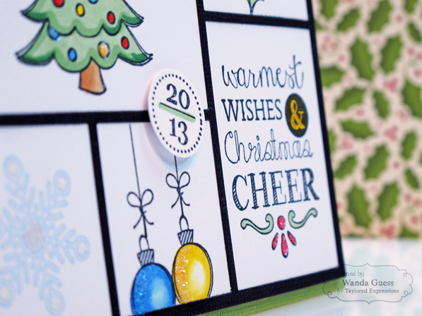 I popped the top panel up on some foam tape. I also trimmed my image and popped that up too for some added dimension and shadow. These glossy dots are a nice alternative to gems….