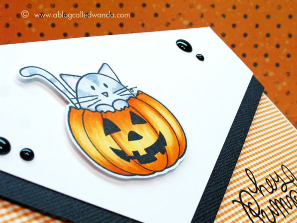 After I had all my coloring done, I added my jack-o-lantern face with dark rich StazOn ink. This way it really pops!