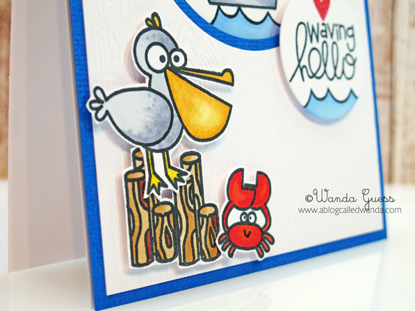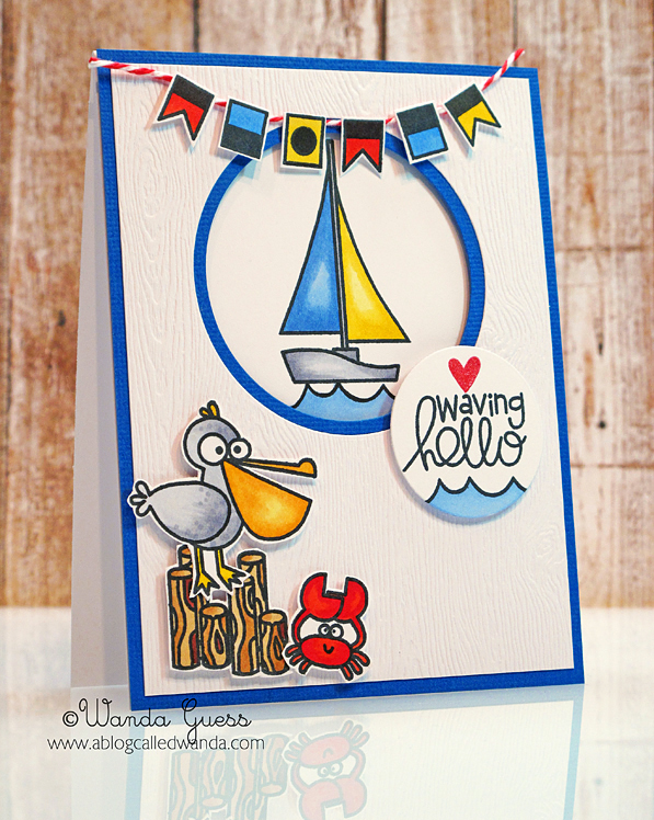 Today's cards are of the CAS variety….lots of white space…and some cool stamps! It's sometimes hard for me to leave all that white space, but I'm working on it. After I made all my cards for this week, I noticed that I stamped two of them with the sentiment "hello there!" So that's the theme for today's part of nautical week. LOL.
