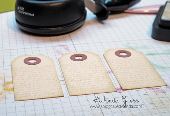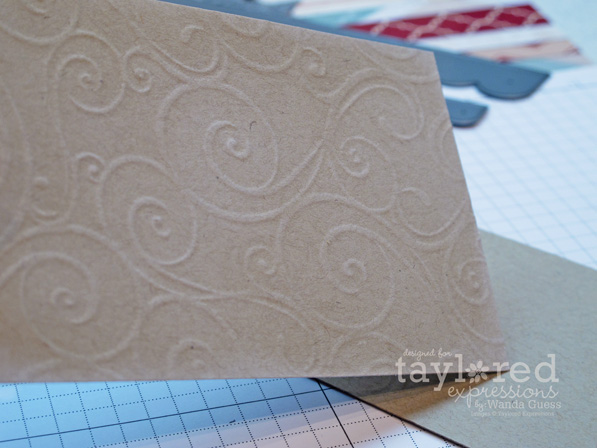 I used the music side of the same impression plate I used for my snowman tags! It's very cool that it is double sided. (Musical/Swirls Impression Plate) This time, instead of using white ink, like above, I went over the impression with some brown distress ink. LOVE this technique! So versatile.