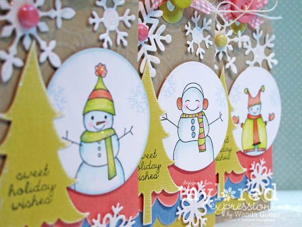 This was a fun challenge today….because I love making TAGS! Here are my creations for our blog hop today… Snow people in fun bright colors!