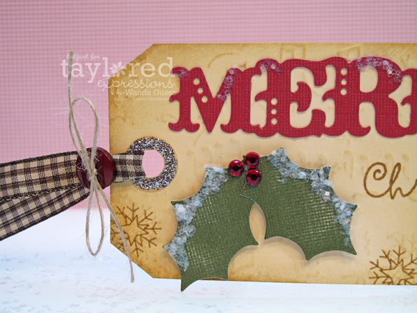Okay…so when I was done with my fun and bright snow peeps tags, I still had all my TE Christmas supplies on my desk, so I decided to make another tag! This time I made a very traditional and vintage tag using red and green. This has a completely different feeling to it.