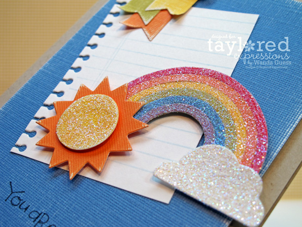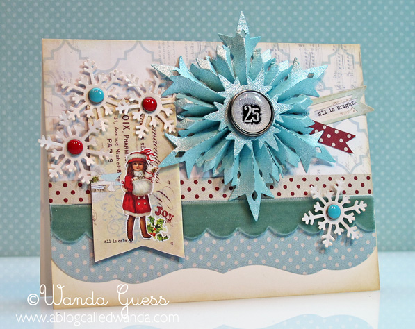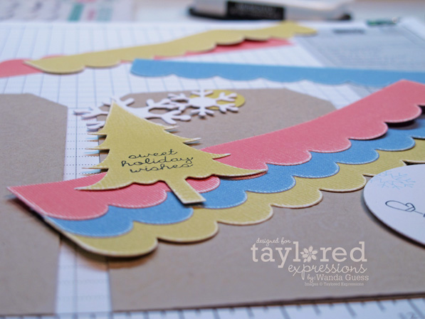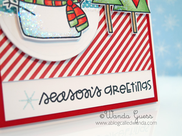 Here's a close up of my festive scallops and the adorable sentiment. I added sparkles of superfine glitter all over the place.