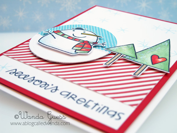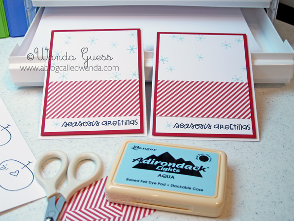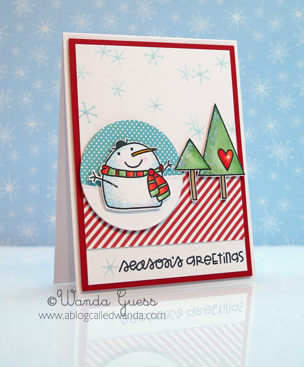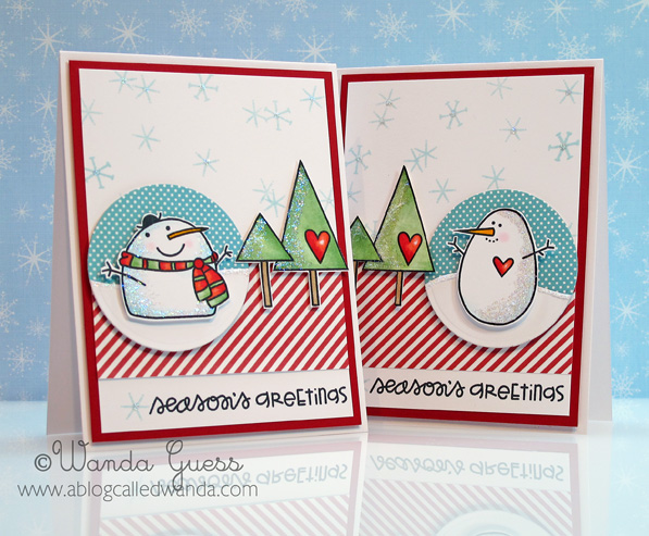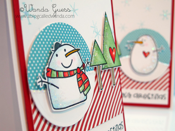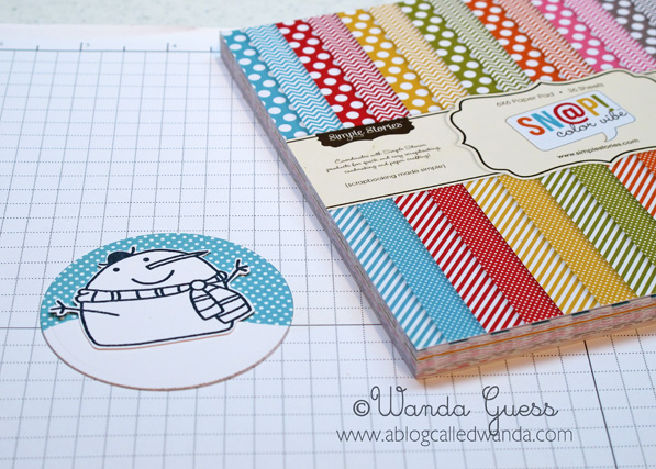 I stamped my snow people in black ink onto circles and then added a couple of snowflakes. I later edged the circles with light blue ink.