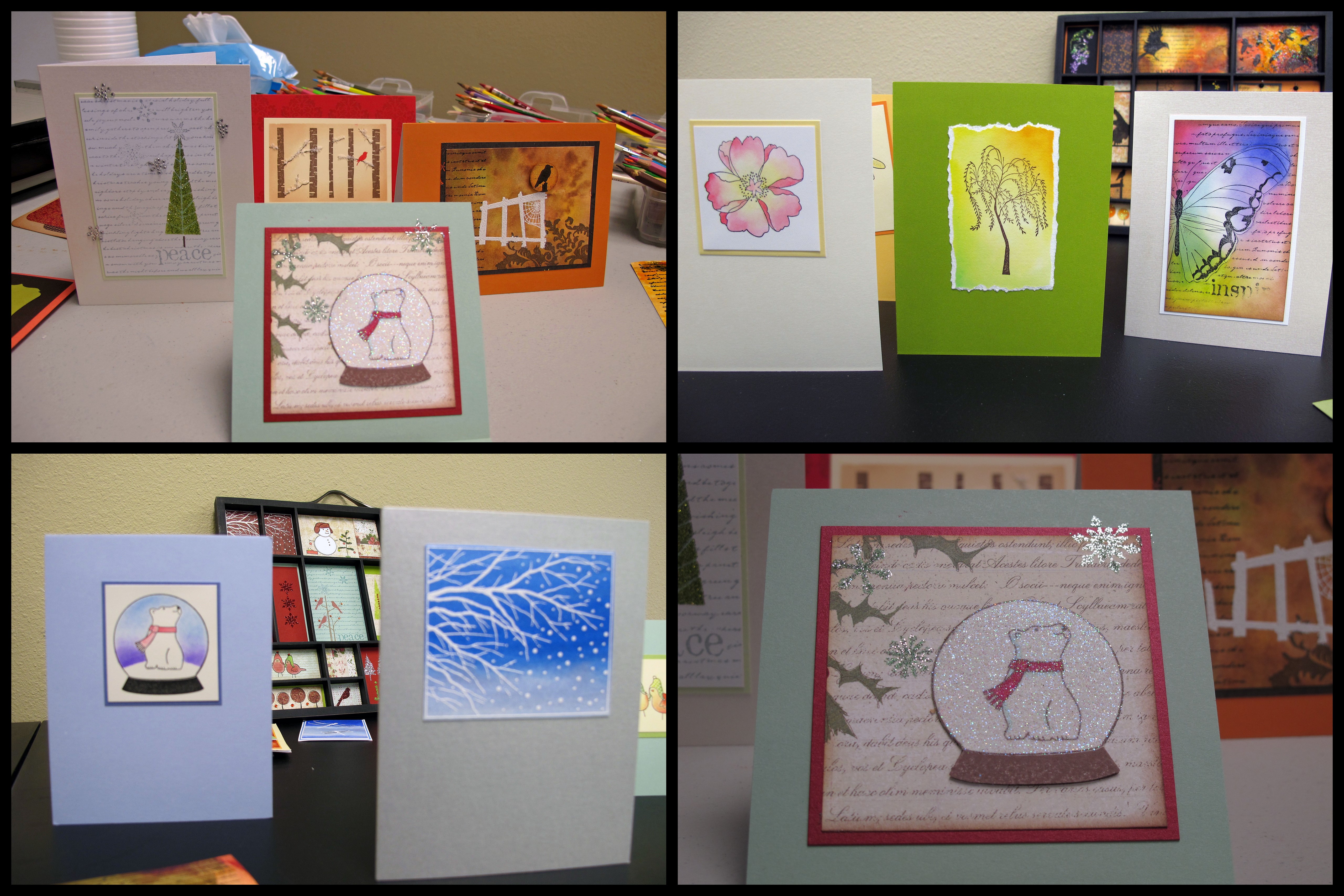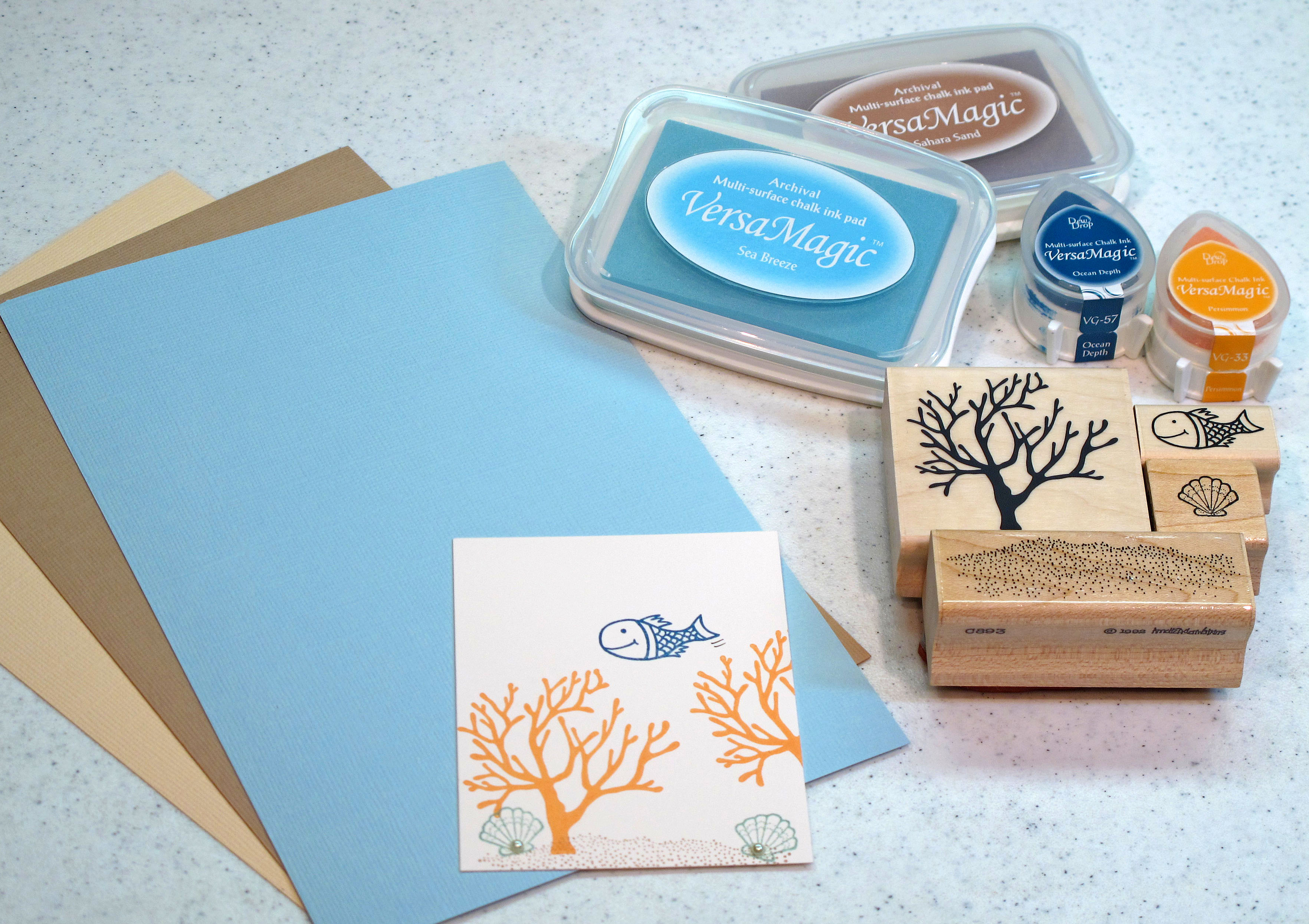 The completed cards! I added some cool waves using my Fiskars edger punch, some pretty scallops, and a cute saying from Amuse stamps: