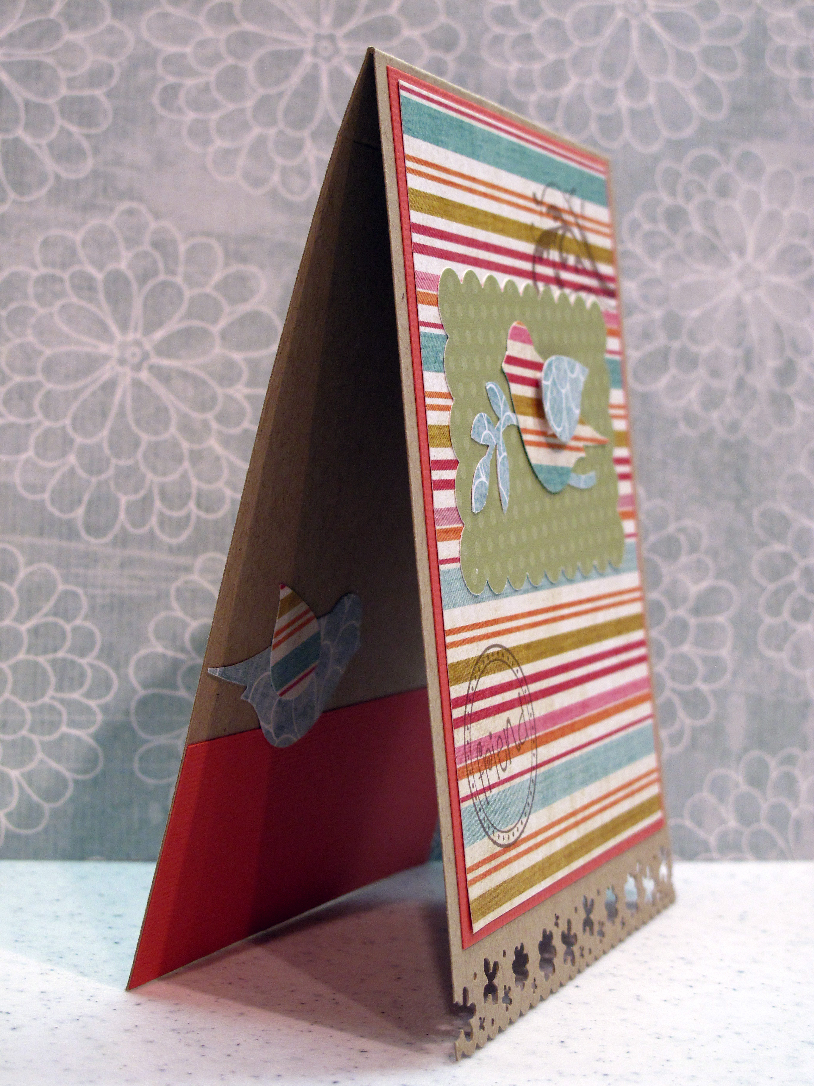 Yeah, I bought the Martha Stewart Ladybug edger punch…..you know I did…. After the ladybugs were colored, I went back with a clear gel pen to make them shiny. Then, I went back over the dots with a black gel pen to make them pop!