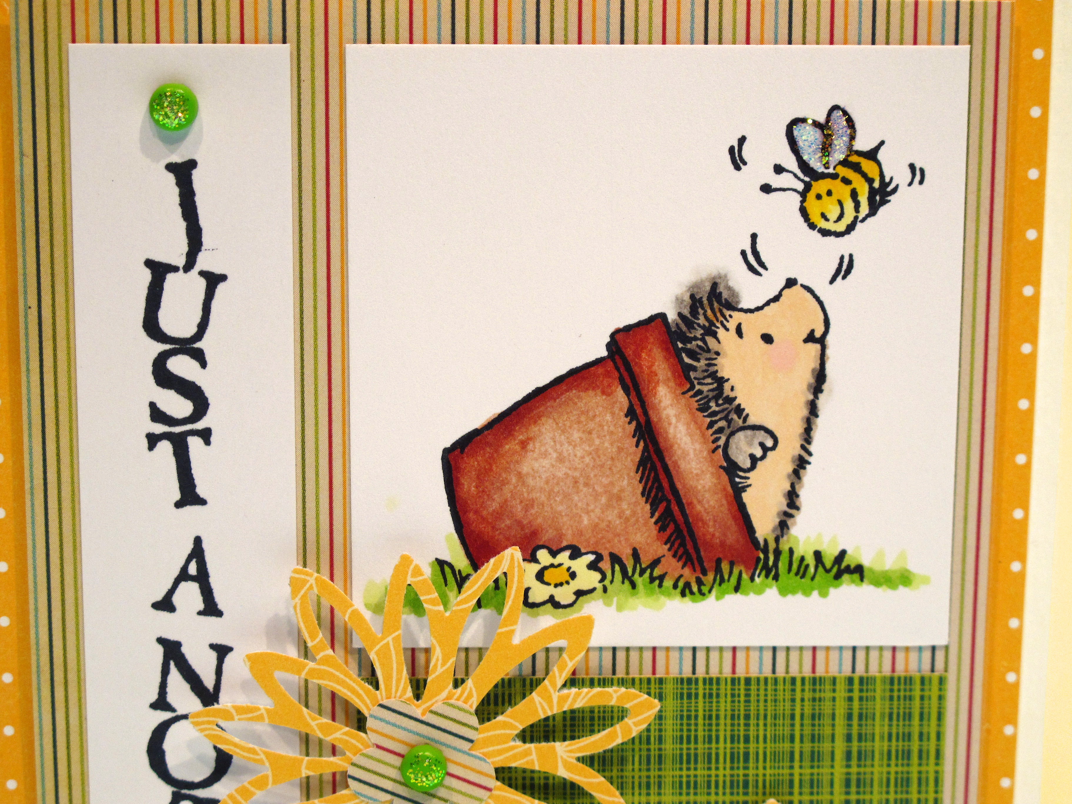 So, I had to make a card today and I thought this cute hedgie image from Penny Black would be a good one to use to illustrate coloring tips.
