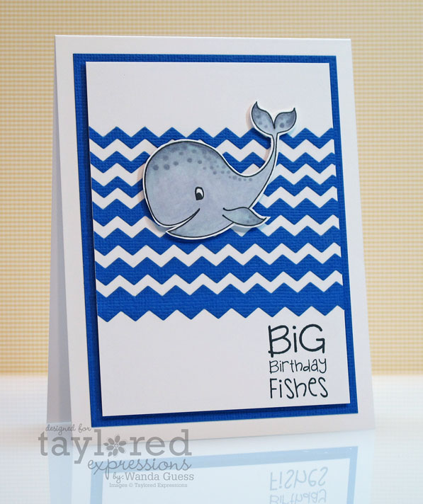 Today is one of my days to post for Taylored Expressions and I have a happy Summer card for ya! I used the awesome new Chevron Border dies and the also awesome new stamp set called Under The Sea. I wanted to use this cute whale image when this release came out…couldnt' wait to ink it up. The layout is clean and crisp, with some pretty royal blue paper… Take a look!