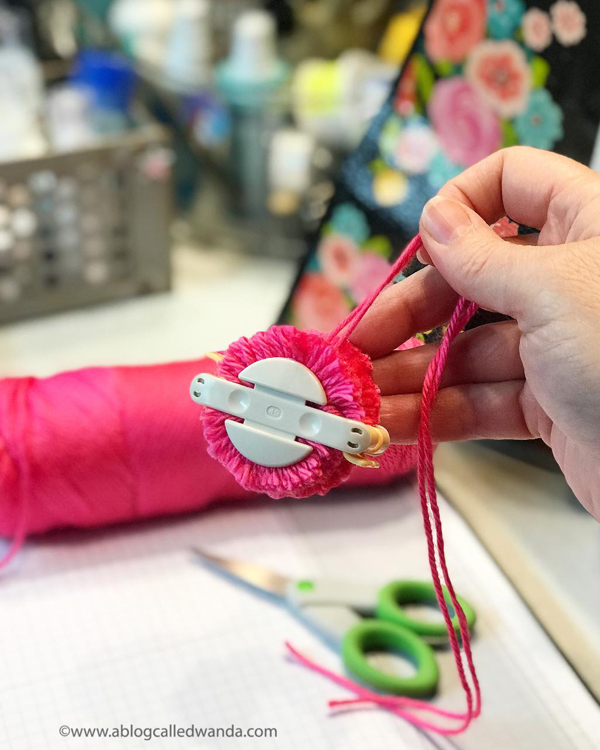 Um, yeah, I might have a thing for pom pom makers!!! This is a photo I took with some different yarn than this project!!! I have every size!!! EEK.