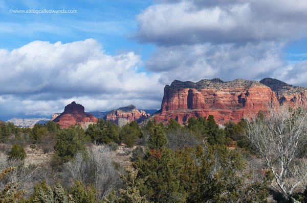 I’ve been to Arizona several times, but always for the show or for work. And I’ve never rented a car or been able to sight see. This trip, I rented a car and went on a road trip the day before the Creativation Show started. I’m SO GLAD I did! I drove from Phoenix to Sedona on Highway 17 through the heart of Arizona. It was a magical, gorgeous day filled with beauty like I’ve never seen before. I wanted to share it all with you. Only a few times in my life have I seen a place so cool that it took my breath away. The Red Rocks in Sedona is now on that list! It made me feel small, and I felt the hand of God in creating His earthly masterpiece for our delight! It was a nice day for a drive – big puffy clouds and perfect temps. Hardly any people out. Just me and the cacti. LOL!