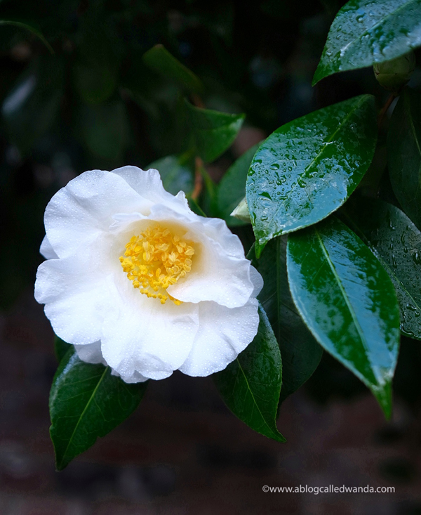 A bright white camellia – I love the contrast with those dark green leaves! OOOH LA LA.