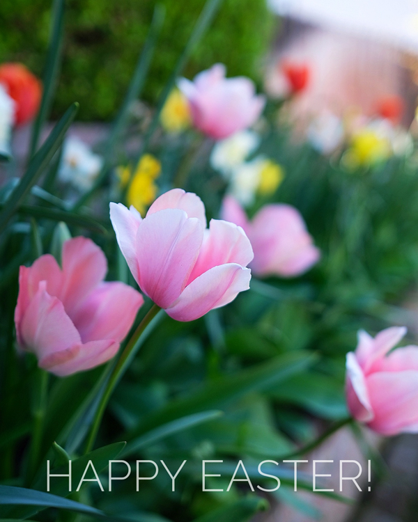 Best wishes to you this Easter. May your life be blessed with joy and prosperity…. The risen Christ is celebrated in every opened flower, in every beam of nourishing sunlight, in every humble patch of green beneath our feet. Easter blessings from our home to yours! He is Risen! Here's a pretty photo from our front yard – that reminds me of the bounty given us by our Savior!