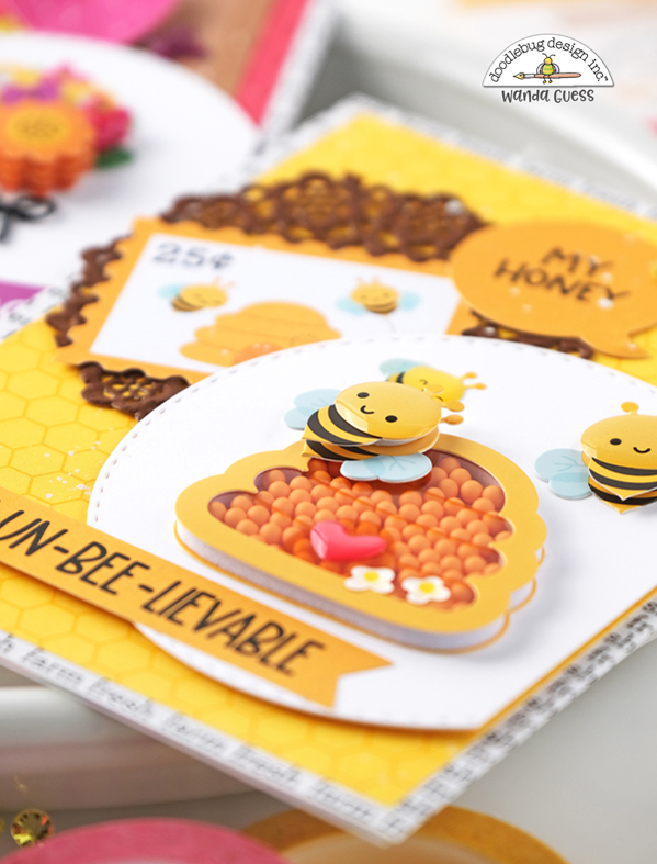 The little Beehive Doodle Pop is a shaker! Bzzzzz. I added a couple of flowers and a heart to that sweet little hive. Oh, and some buzzin bees too.
