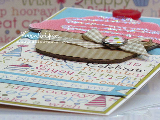 This is adorable, Wanda! Such a fun and festive card1 Love, love that cupcake. the corrugated paper for the liner and the sparkles on the frosting are just perfect. And you make me smile with your gingham and polka dots. 🙂