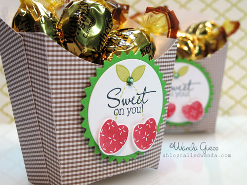 Oh, man, I SO love gingham, too! And how stinkin’ cute are these fry boxes?? EEK! LOVE that brown gingham paper….brown being my favorite color and all. And the PTI cherries and dies are to die for! These are gorgeous, Wanda!