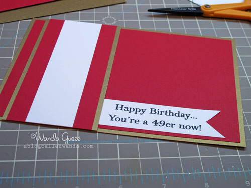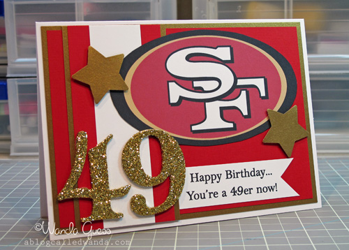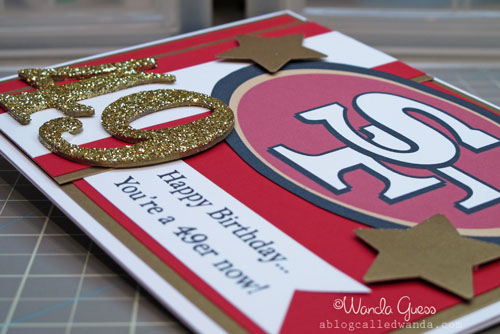 Hi! Today is the hubs' birthday and I thought I would share his birthday card and also share our outing to San Francisco yesterday to celebrate his birthday! My husband was born in San Francisco and he is a HUGE 49er football fan. Right now he's in the family room watching the game. It is so hard to make him cards. But, I got an idea…this is his 49th birthday….so I made him a 49er card! Yeah! He totally flipped out and loved it. That made me really happy. I hope you get a kick out of it too.