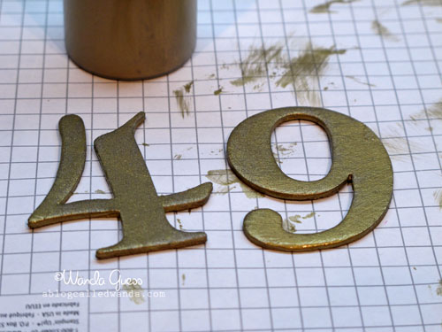 I can't remember where these chip board numbers are from…maybe Basic Grey? I painted them with gold craft paint before adding the glitter. I have found that if you don't put something (color) down first then the glitter looks dull. I LOVE making glittery numbers!