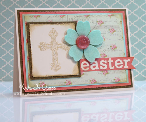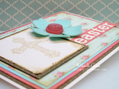 This cross stamp I've had forever, and it's from Anna Griffin. I stamped it in distress ink and then used more of the ink around the edges of all the papers.