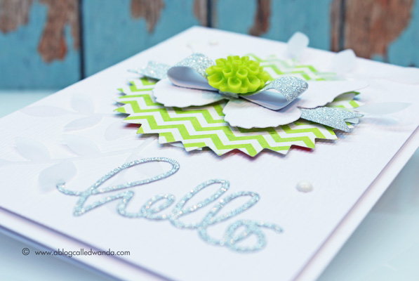 Ooh, I LOVE it, Wanda! Really crisp and clean, with a bold zip of color with that lime green. Really love this mixed with the glittered silver, and the vellum, too! Total awesomeness!