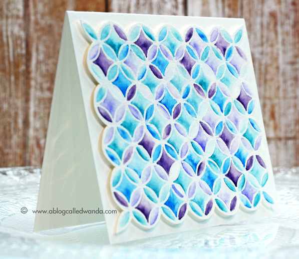 Here is card #1 with another SUPER cool watercolor technique from the Onlinecardclasses class I signed up for. I'll warn you, this took about four hours! But, I think it's worth it because I really like how it turned out. Lots of color and a pretty pattern.