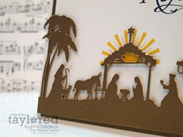 Hi bloggy friends! It's only a couple weeks until Christmas now! Wow-this year is gonna be gone in a flash. Tomorrow is the DH's 50th birthday! Whew. I'll be back tomorrow to share his card and some of the pictures we took on his birthday outing. Today is one of my days to post for Taylored Expressions. Ever since this beautiful Nativity Die came out I have wanted to make something with it. It's amazing – so pretty and it cuts perfectly. I kept my card simple, to feature the scene. I combined it with a couple of my favorite stamp sets too.