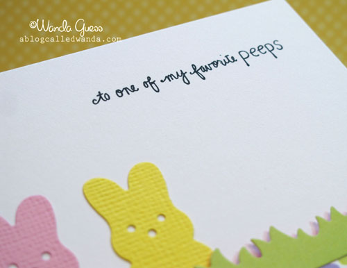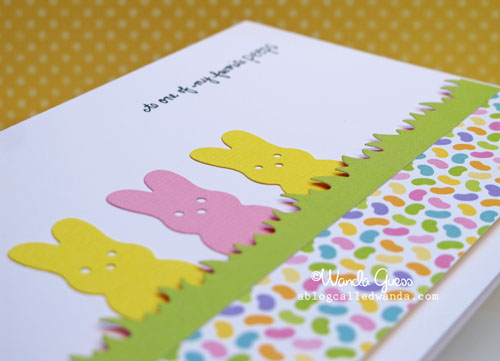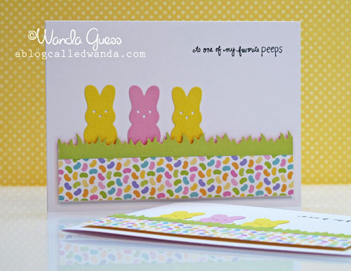 This card just makes me so happy, Wanda! LOVE those adorable peeps and that happy paper. The grass border die and the peeps die are the cutest things ever! That sentiment you already had is absolutely perfect!
