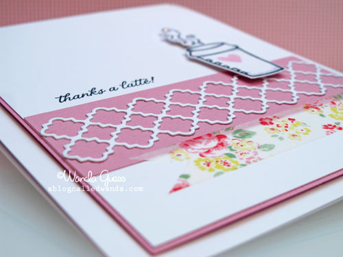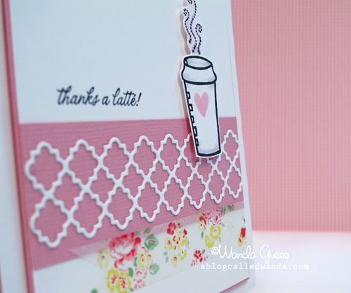 So here's the card I made her to say "thanks a latte" to her for going and bringing me a much needed Venti Soy Caramel Macchiato! Her favorite color is pink…