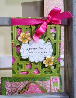 This trellis (called Tessatina) die is a brand new die from Memory Box for Spring…I am in love! It looks very nice and crisp against this pink. This quatrefoil pattern is without a doubt my favorite new stamping 'thing' and it's popping up everywhere. Hero Arts has a new stamp (Studio Calico) with this pattern coming out soon. I saw it at CHA. YUM.