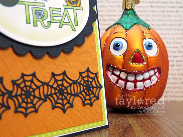 The background solid color paper was first embossed with the Swirls side of the TE Swirls and Music impression plate which was released last year for Christmas. I use that all the time!