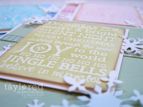 The snowflakes were made using a new TE Die set called Make a Snowflake…and there are six snowflakes included. You can layer them endlessly and they coordinate perfectly with the new Snowflake Border Die too.