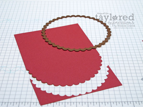 Here's a fun trick to make a nice scallop border on a card layer….Just tape your Nestie to the front of the paper and then only run it HALF way through your cutting machine!
