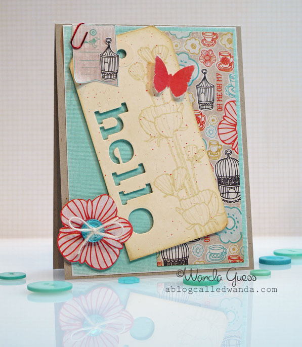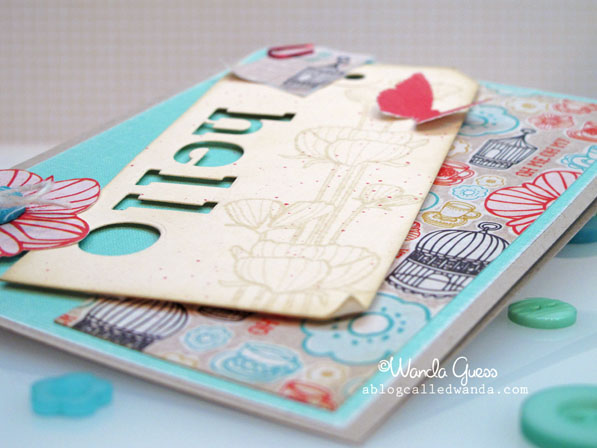 I used the pretty Poppies stamp as a lovely soft image on my tag. I was going to color it in, but it didn't look right. I love the aqua popping through!