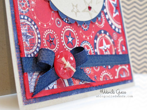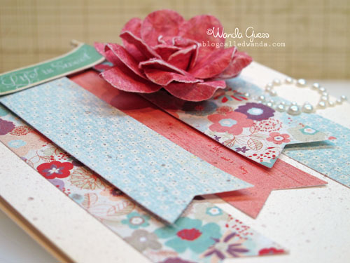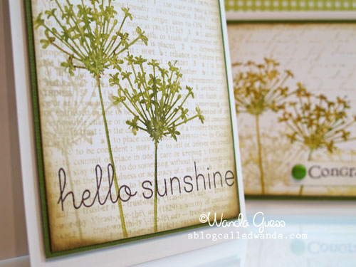 On this card, I also crumpled the paper first and did the same technique to the crocheted ribbon…. This card is more of a CAS design though.