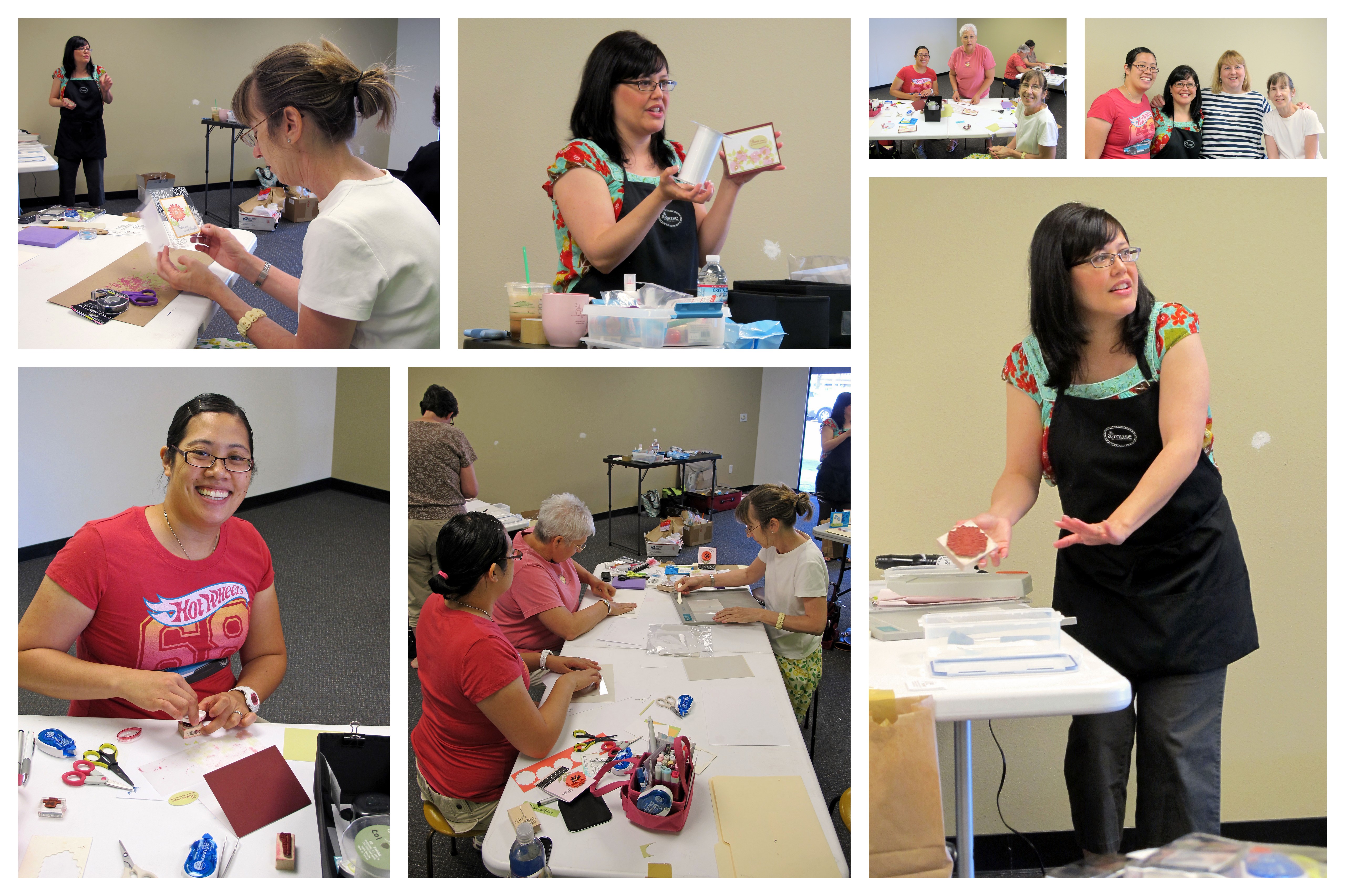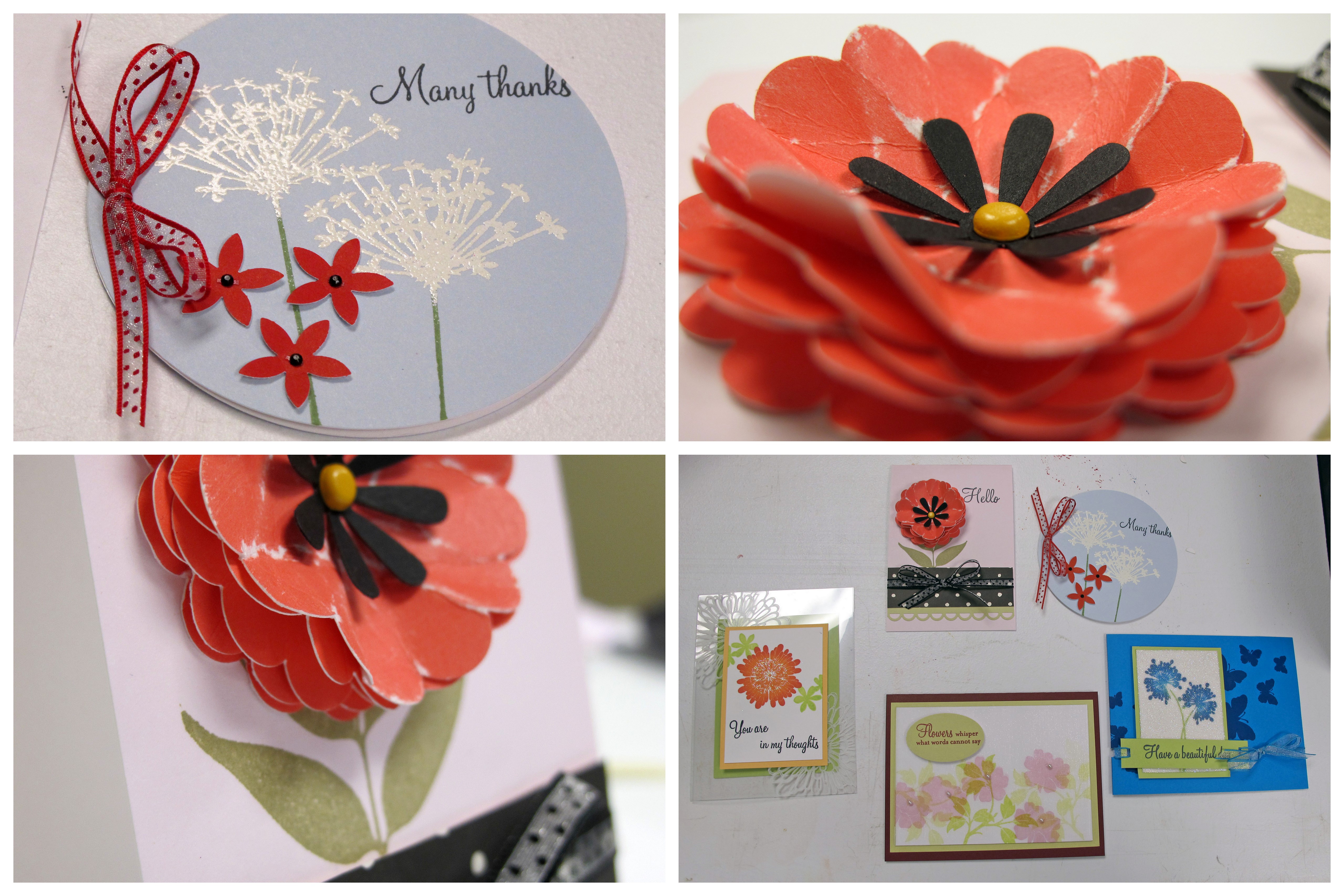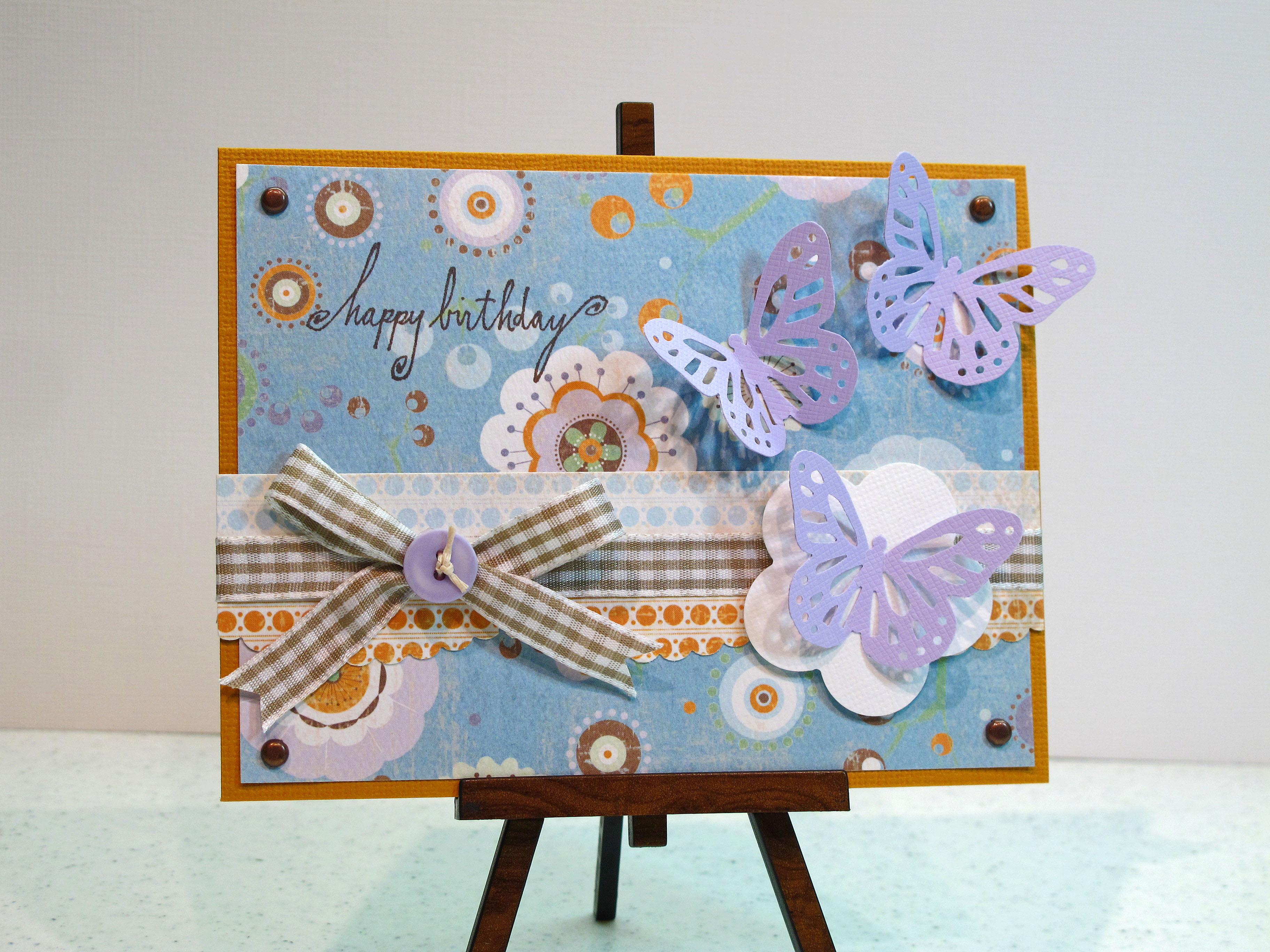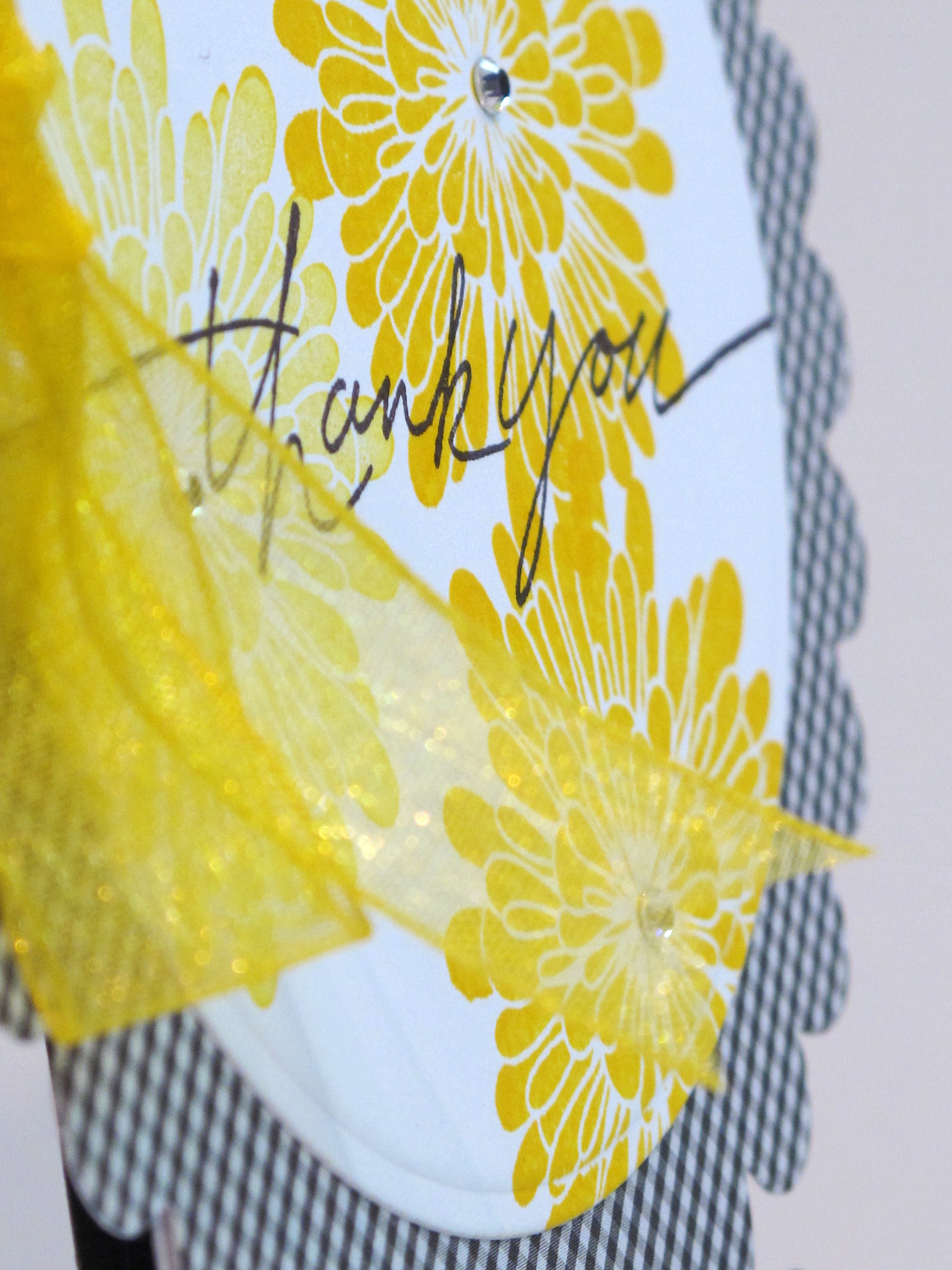 Here is the card. I tried a new technique with the cut out. I used my Creative Memories oval cutter after putting the layers of patterned paper together. Then I used my oval punches to make a center piece and hooked it all up with ribbon!