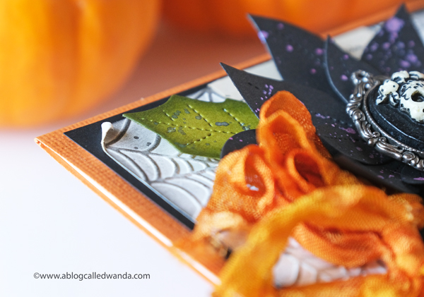 Oh my gosh that is an amazing card. So many great details. That would be one to hand deliver I would think. – Love how you used the poinsettia die to create a Halloween card.