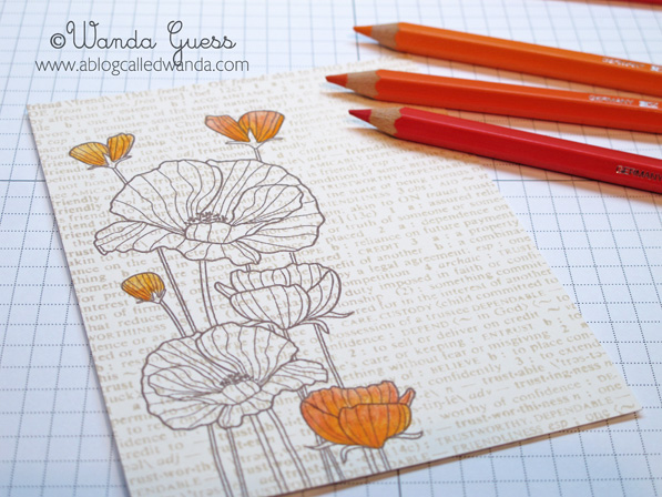 The poppies are one of my favorite (and most used) stamps. I don’t use Copics, but I often use watercolor pencils, sometimes taking brush directly to the pencil for more intense color. I also like the effect of watercolor pencils and markers on watercolor paper.