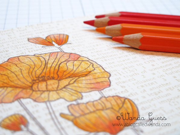 My flowers are orange because they remind me of our California State Flower – the Poppy! I love this technique because you can see the text underneath the colored image. I just think that's so cool.