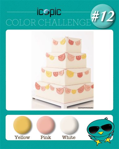 This is the inspiration image and the color for the challenge…pink, yellow and white. I used the "cake" theme for my card too, but instead did cupcakes.