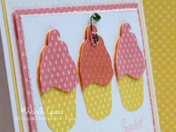 What a yummy card! Cupcakes…polka dots…cherry bling…just doesn’t get any better than that!