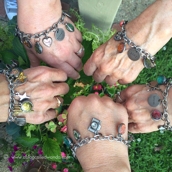 I brought my Idea-ology Charm Bracelet project to share with everyone and they loved it. All the bracelets came out pretty and unique. Tim Holtz supplied the products for us – huge shout out to Tim and Mario for that. And, they sent enough items so that I could share one of the bracelet kits with one of YOU as a prize! (Read to the end of my post to find out more). I'll just start with some photos and share more as I go along….