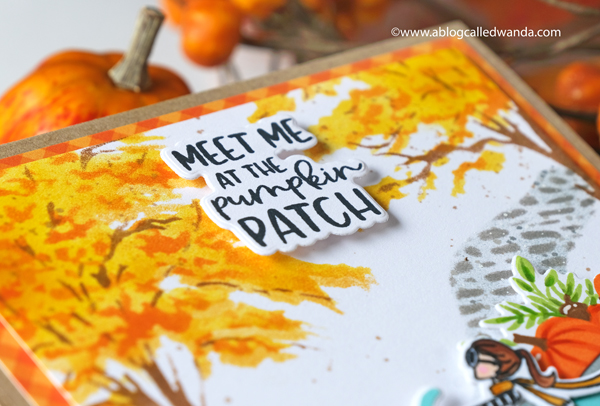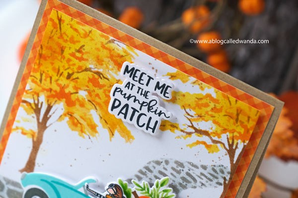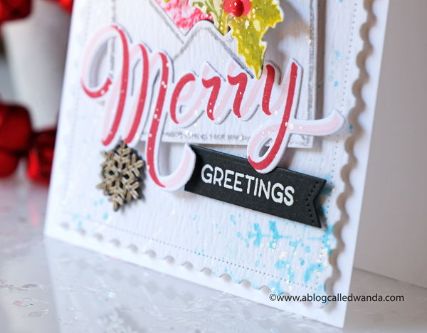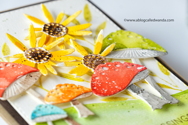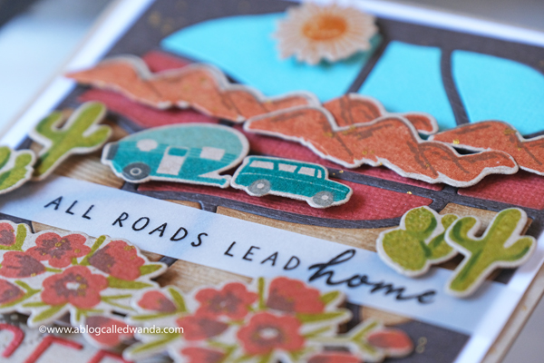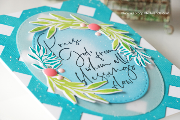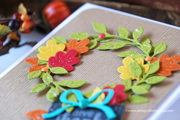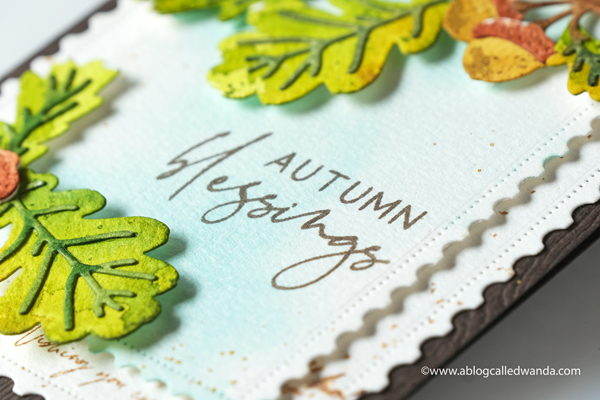 I stamped the sentiment in aqua and die cut it with the matching die. In this photo you can see the layers of the leaves. I used my MISTI to stamp all of these parts. Just makes it so easy and perfect.