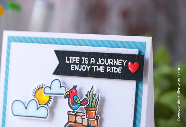 My second card is also an A2 card base, but in bright white cardstock. I layered aqua and pink for that perfect retro/modern look. I love pink and aqua together….and a pop of red too! Yummmmm. I used the same ink pads for both cards. CLICK HERE for my supply list!