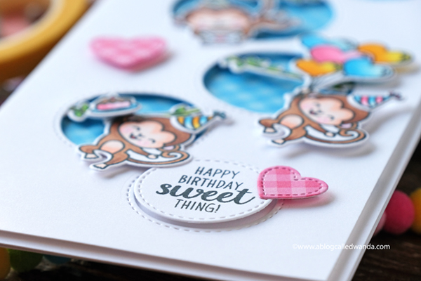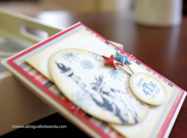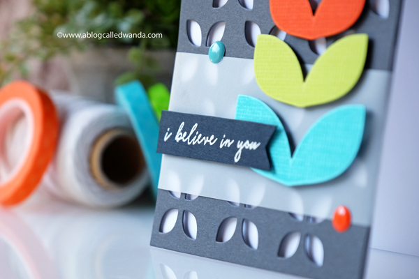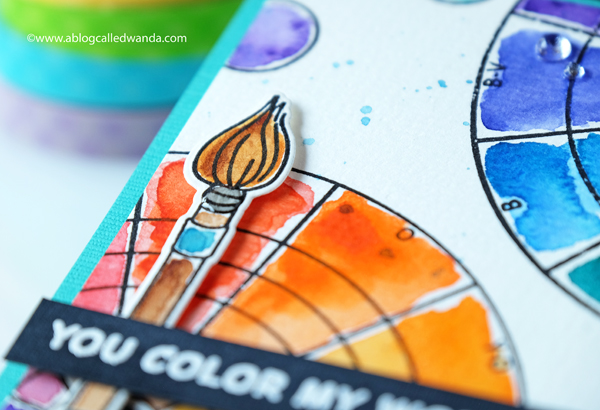 I attached the paint brush on the card and then layered the sentiment banner over it. I like the graphic look of that black and white banner. I tried to think outside the box and come up with a cool way to incorporate the color wheel into something else! A card!