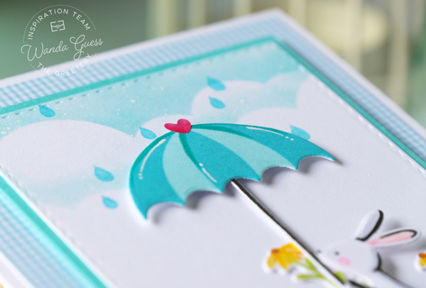 I die cut the bunny circular wreath out with the matching die. PERFECT!! I stamped the sentiment onto a circle die cut and placed it behind the wreath and affixed the wreath onto the card with foam tape.